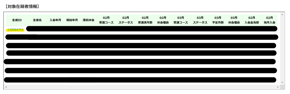②報告レポートの最下部→対象在籍者情報がございます。