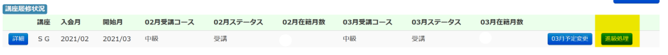 一番右端の「進級処理」ボタンを押して、進級の報告をお願いします。
