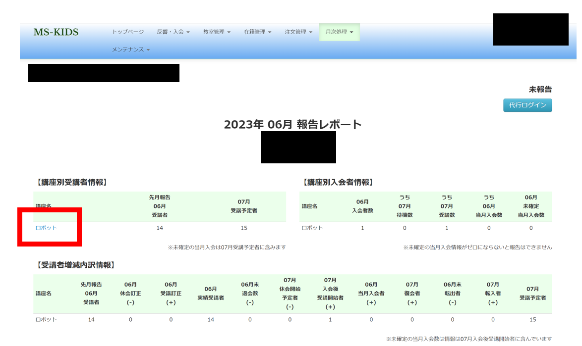 MS-KIDS>>月次処理>>月次報告一覧 より、