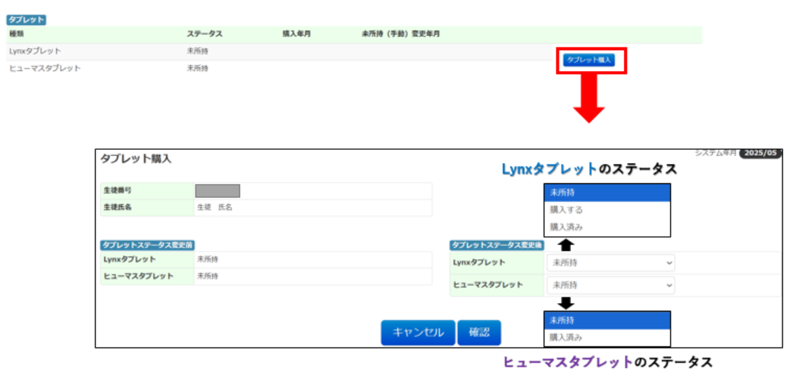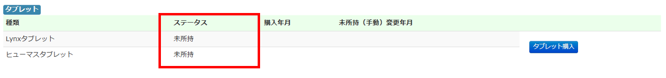 タブレットを既に購入されている方のステータス変更にて表示されます