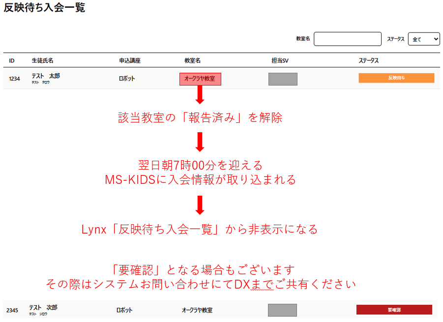 【Lynx→MS-KIDS】MS-KIDSが報告済み状態でのLynx入会申込後のデータ流れ