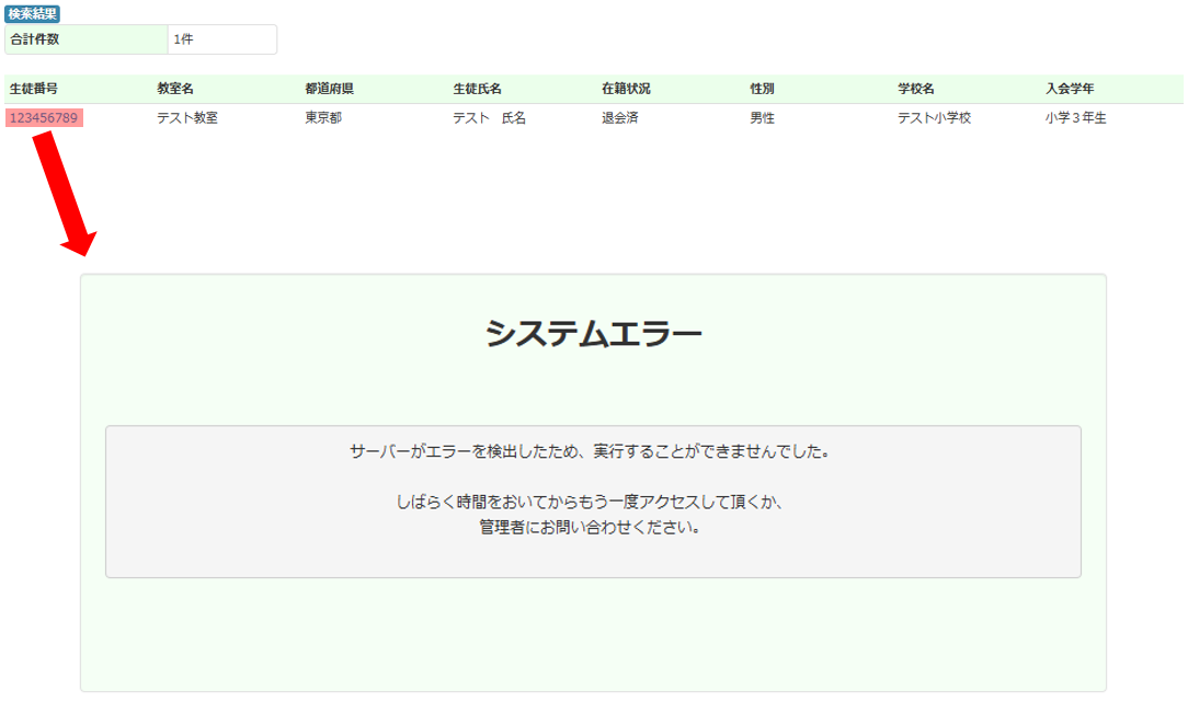 Q:個人情報作成時に、該当生徒の詳細画面に遷移できないため、