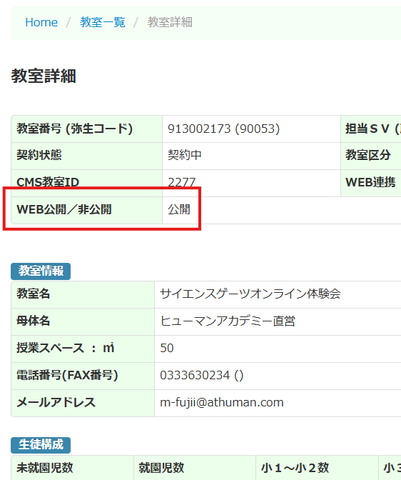 ※MS-KIDSの『WEB公開/非公開』のステータスが『非公開』でも①②の条件を満たせはHPに表示