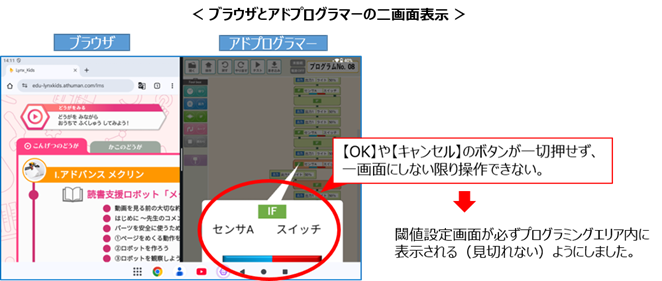 ①2画面表示時に、閾値設定画面の一部がプログラミングエリア外になると操作できなくなっていましたが、
